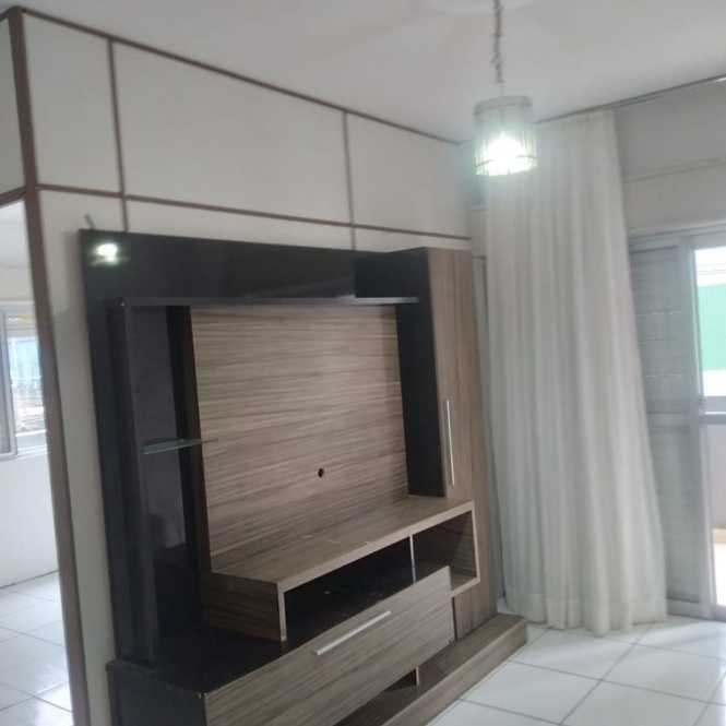 Apartamento com 1 dormitório, sala, cozinha, banheiro e sacada.