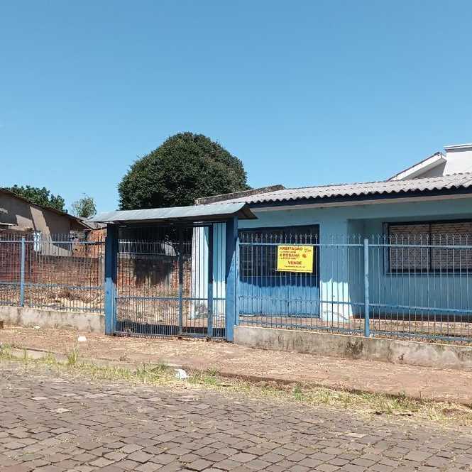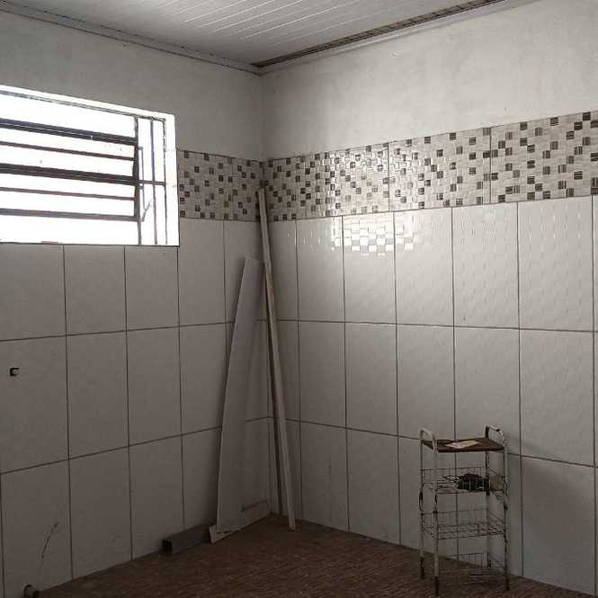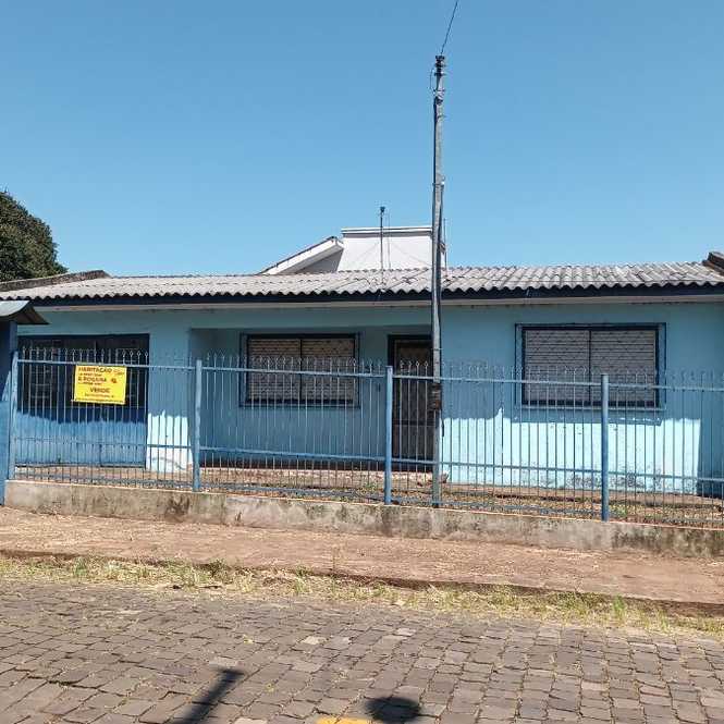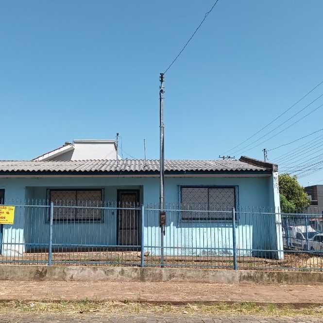 Casa de alvenaria com 3 dormitórios, sala, cozinha, banheiro e garagem.