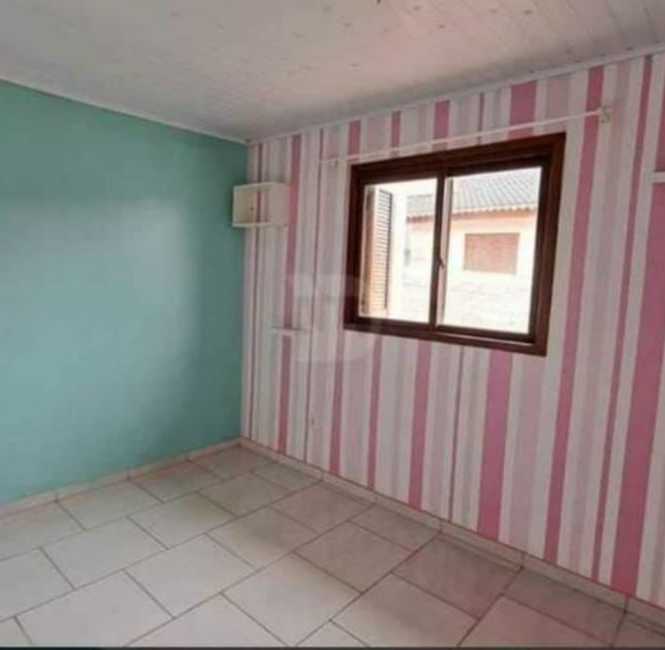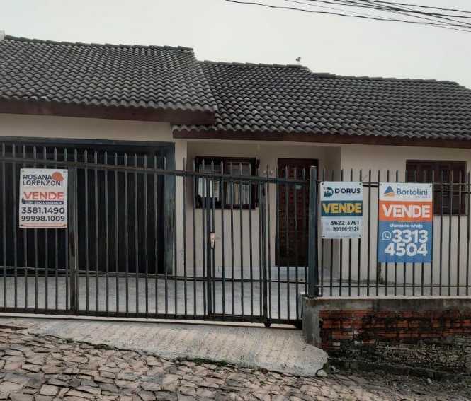 Casa de alvenaria com 2 dormitórios, sala, cozinha, varanda, banheiro, lavanderia e garagem grande com churrasqueira e fogão campeiro.