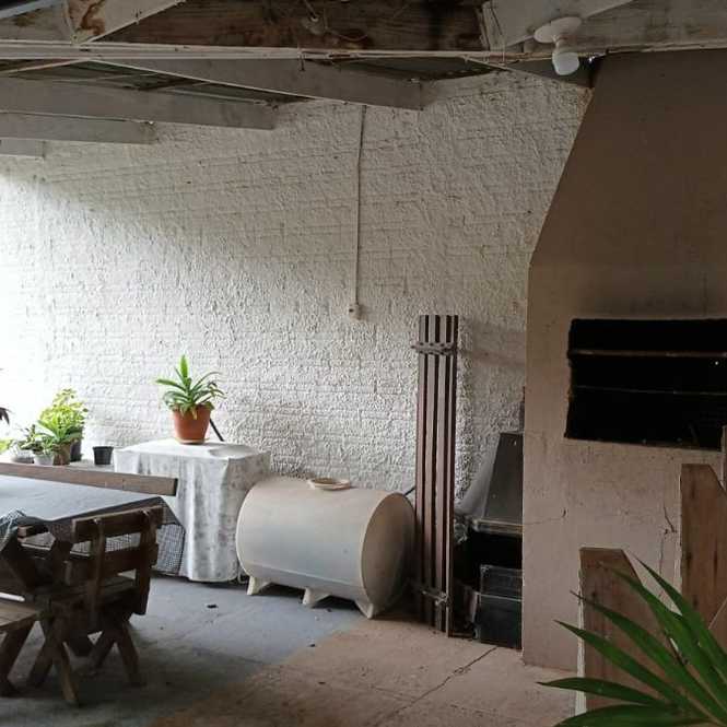 Casa de alvenaria com 2 dormitórios (1 suíte), 2 banheiros, sala, cozinha, lavanderia, garagem, quiosque com churrasqueira.