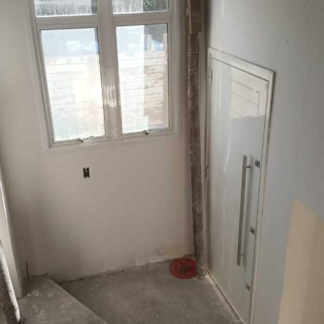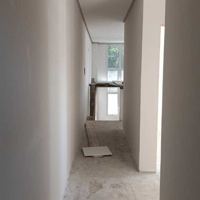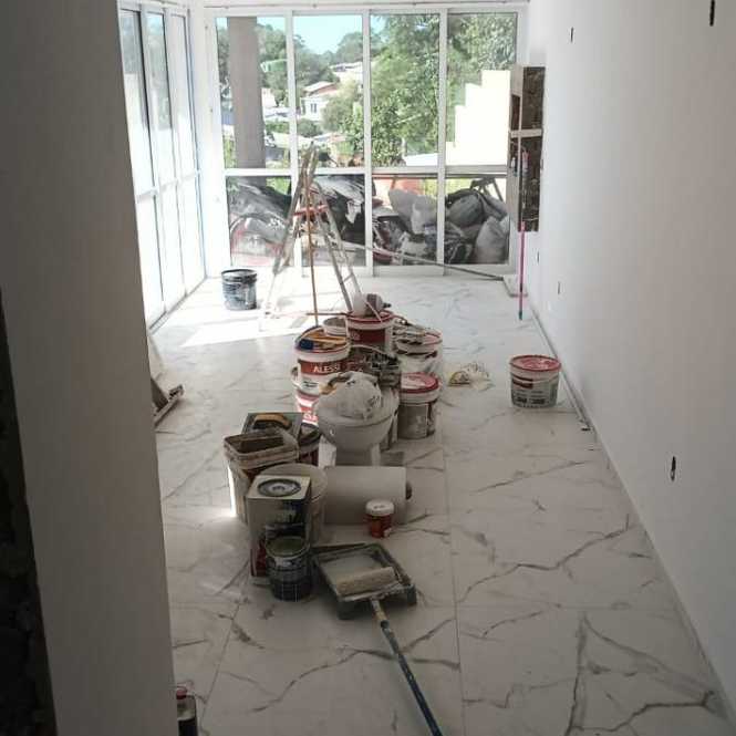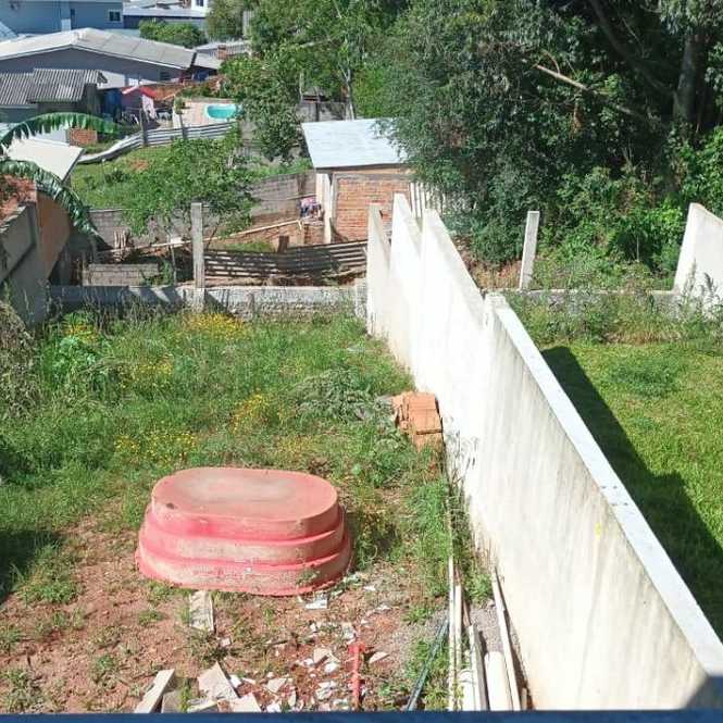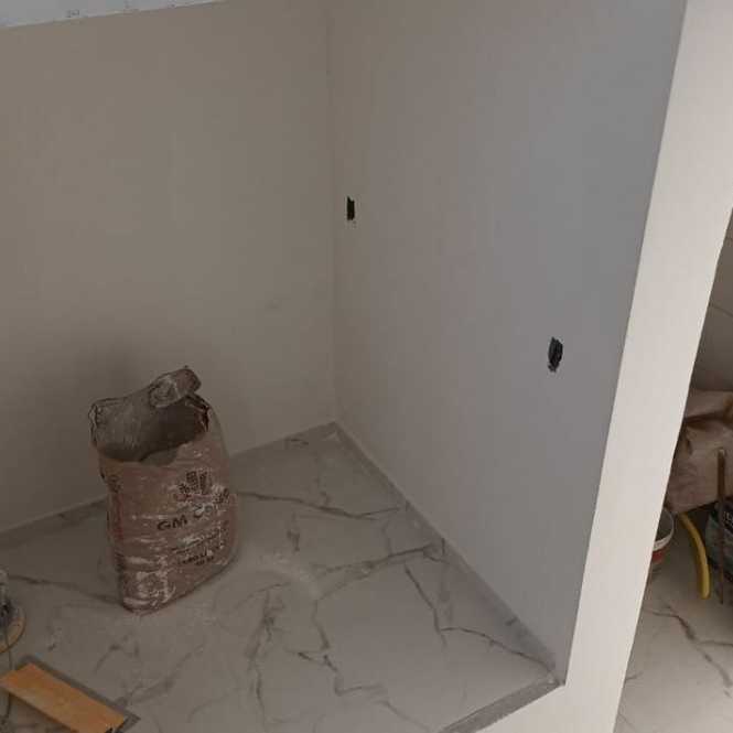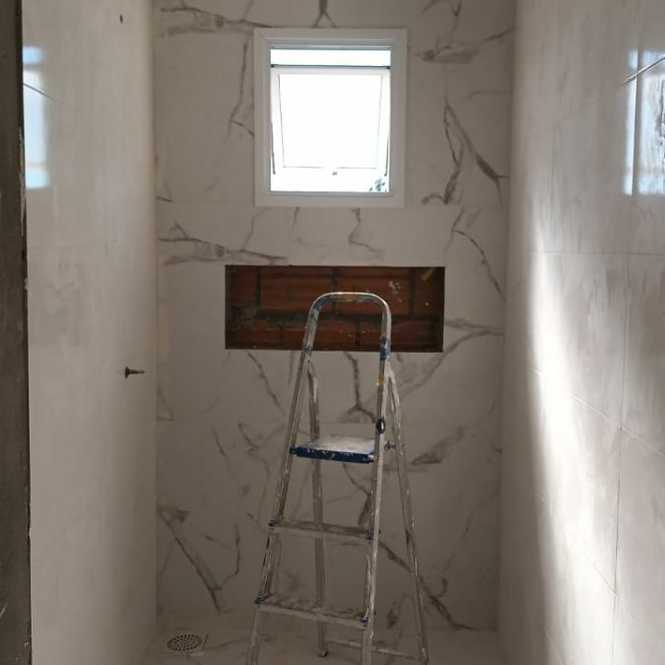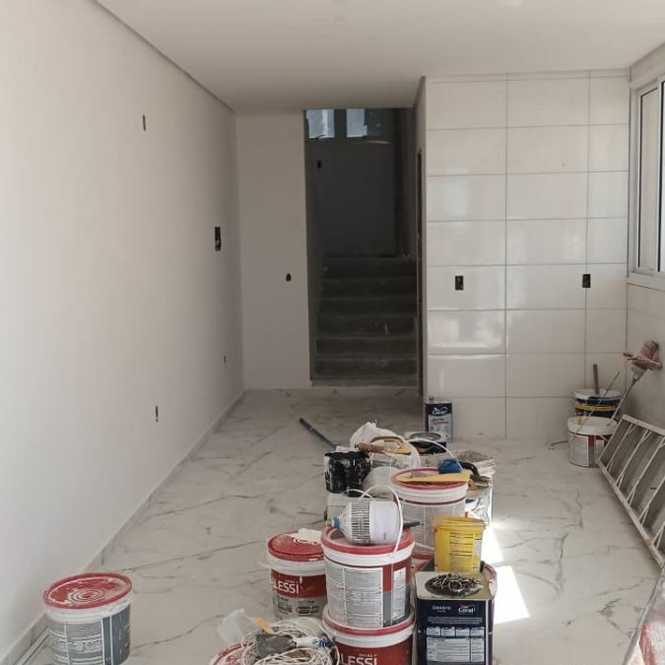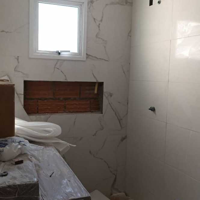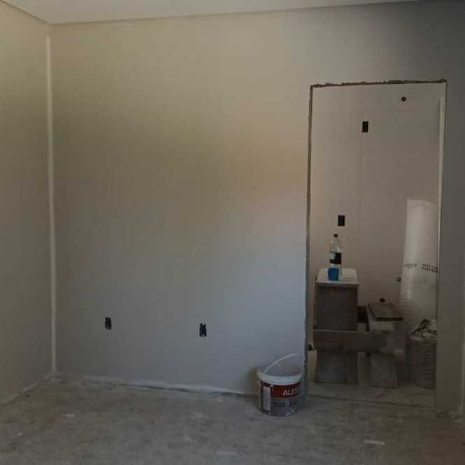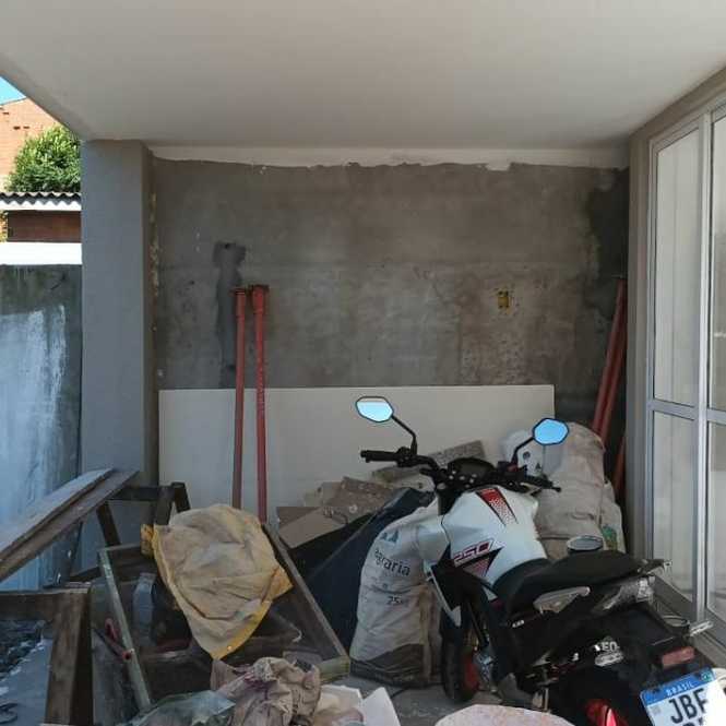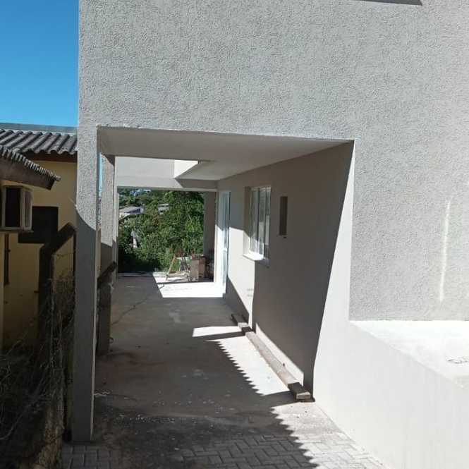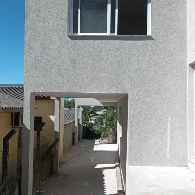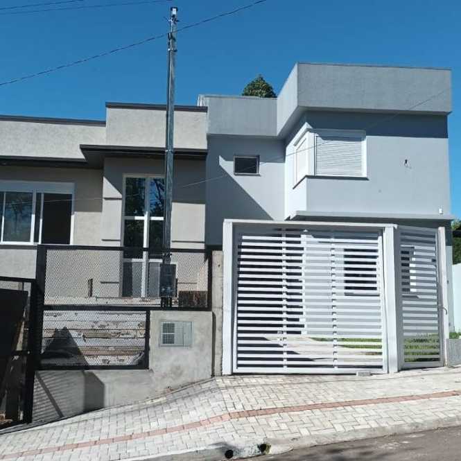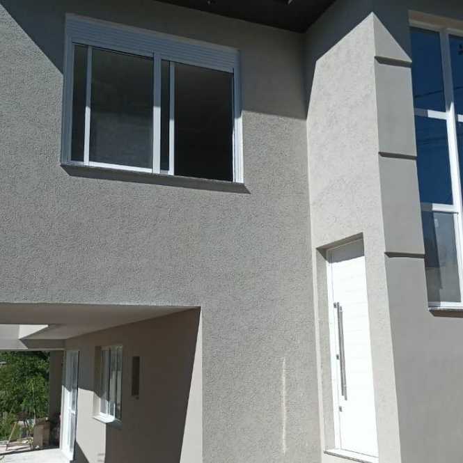 Casa nova de alvenaria, 2 pavimentos, com 3 dormitórios (suíte mais 2), 2 banheiros e sala na parte superior, mais hall de entrada, lavabo, sala e cozinha com churrasqueira, mais garagem, na parte inferior.
