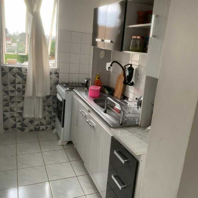 Apartamento com 2 dormitórios, sala, cozinha, banheiro e vaga para um automóvel.
