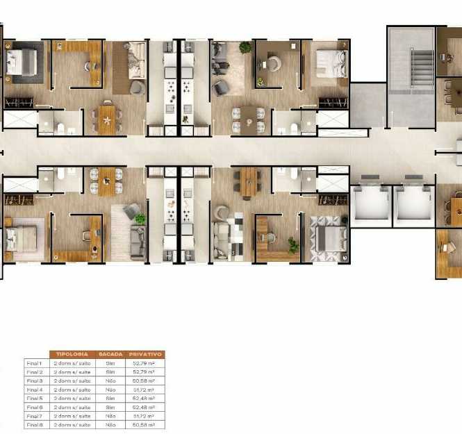 Apartamentos com 2 e 3 dormitórios, com ou sem suíte, com ou sem sacada, todas as unidades com churrasqueira.
