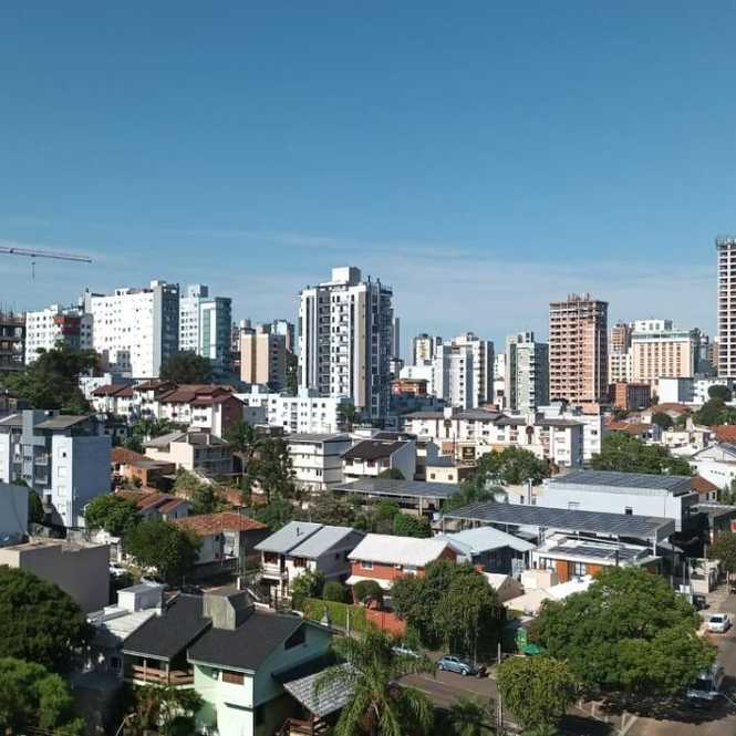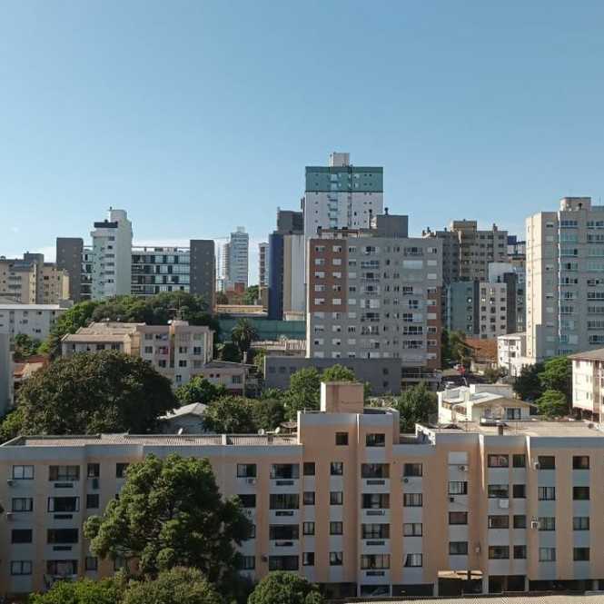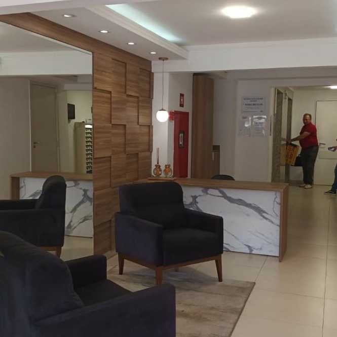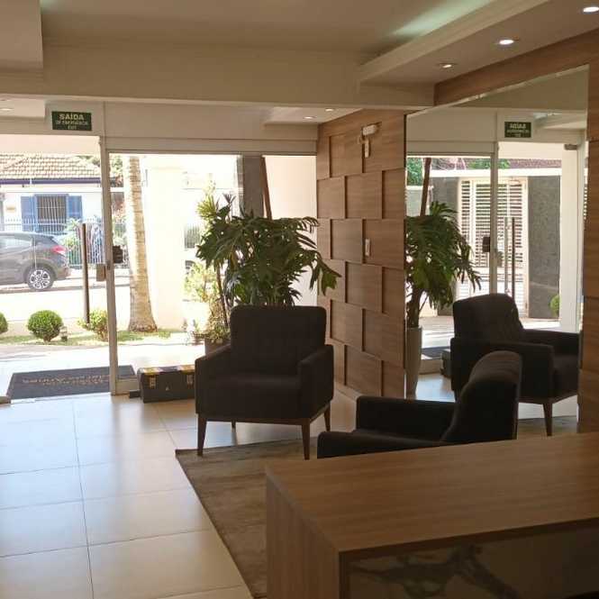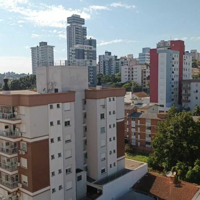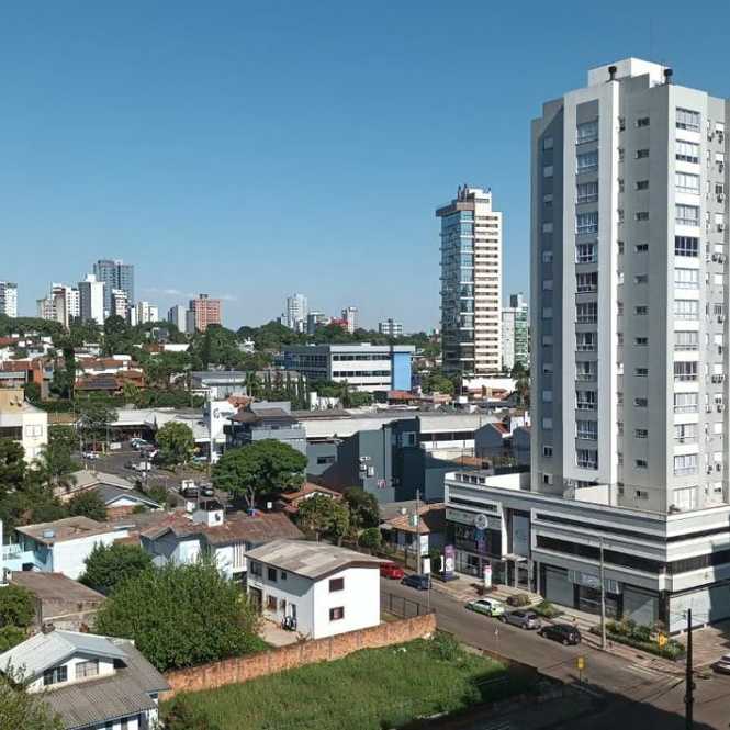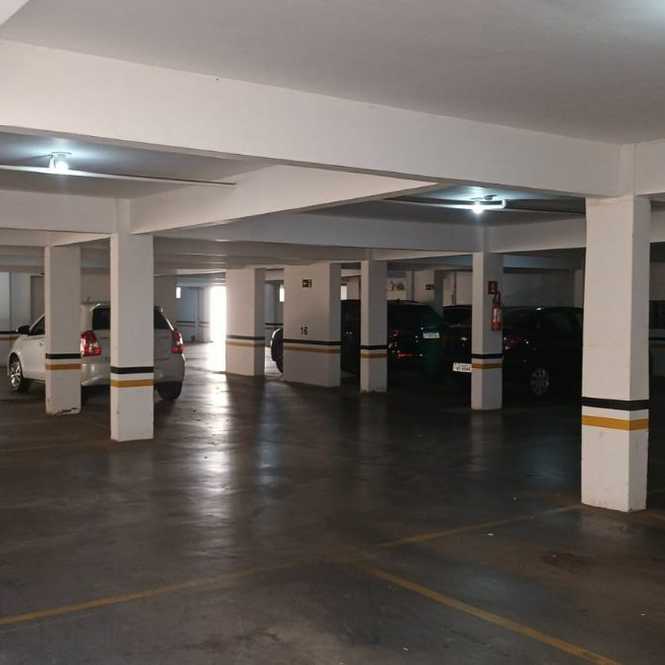 Apartamento de frente, andar alto, com 2 dormitórios, sala, sacada, cozinha, banheiro e garagem.