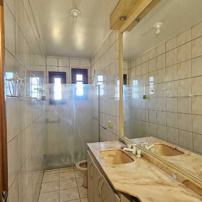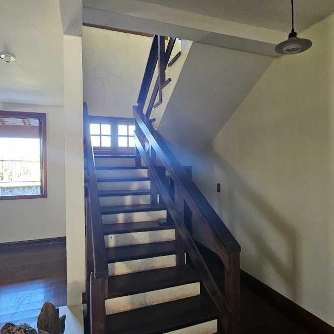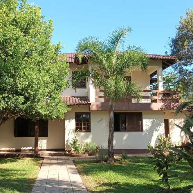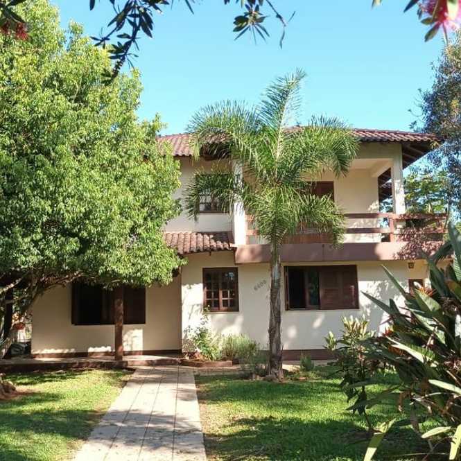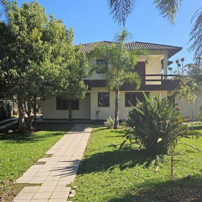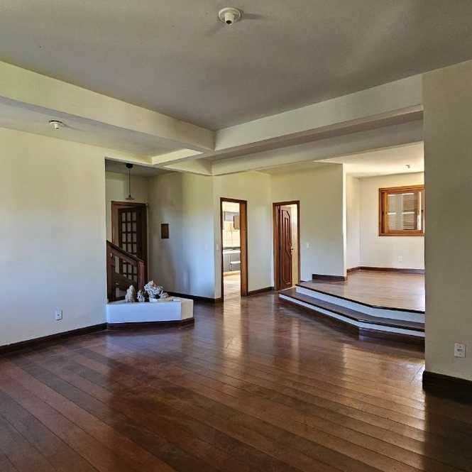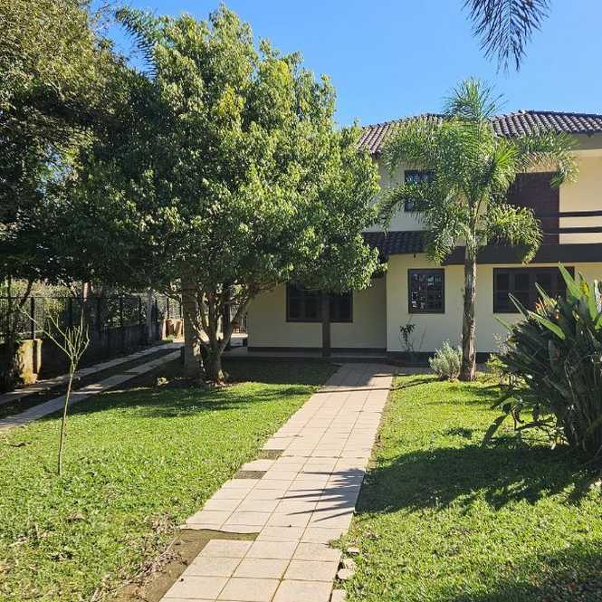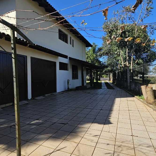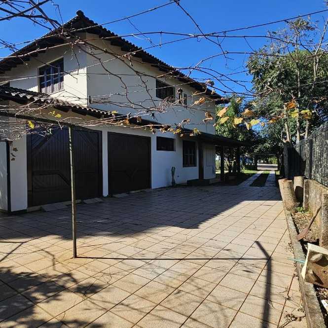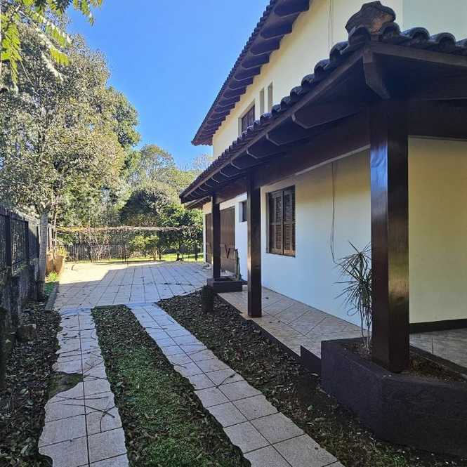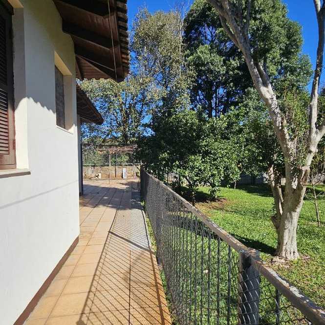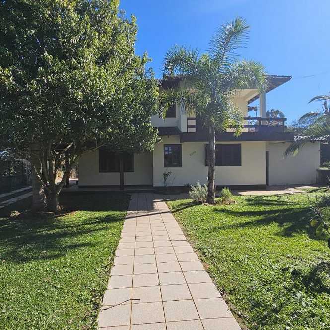 Casa com 400 m2, com 4 dormitórios, sendo 1 suíte com closet e hidro massagem, sacadão na suíte, banheiro social, na parte superior. Na parte inferior tem 2 ambientes de sala em 2 níveis, lavabo, adega, cozinha, lavanderia, banheiro social, espaço gourmet com churrasqueira, garagem para 2 caminhonetes, varandas. Jardim e pomar.