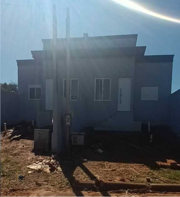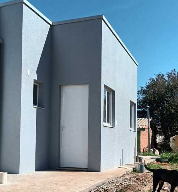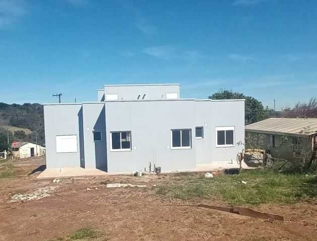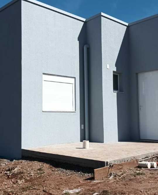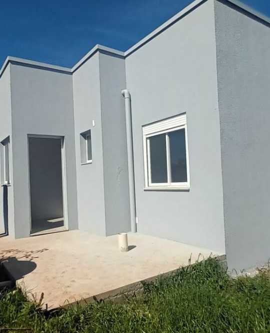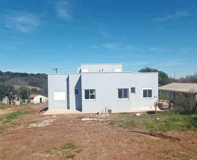 Casas com 2 dormitórios, sala, cozinha, banheiro e espera para lavanderia e churrasqueira.