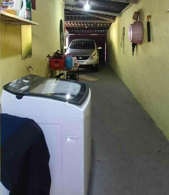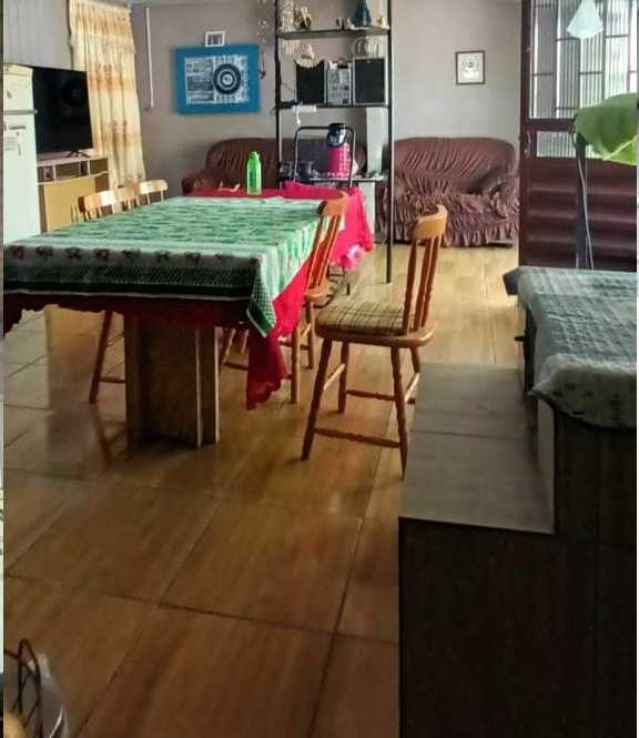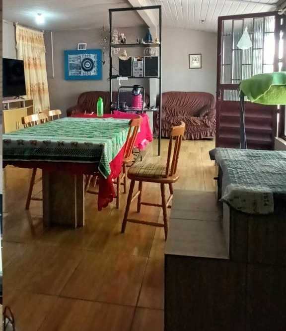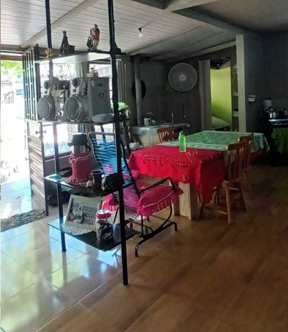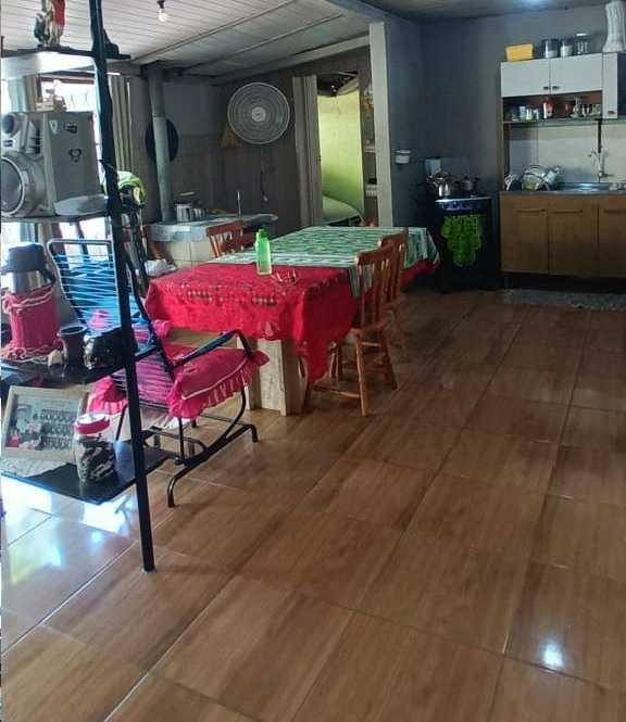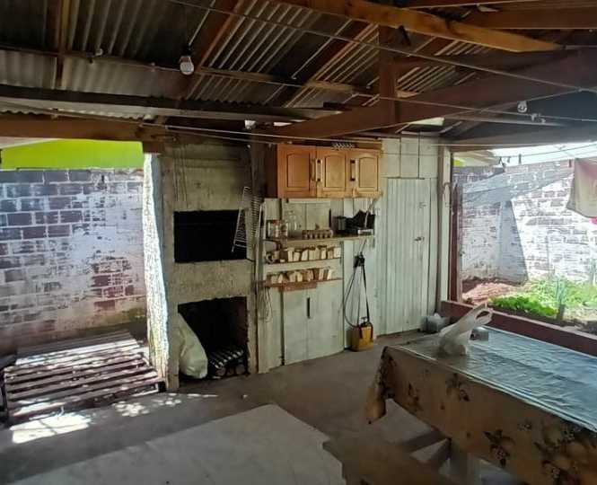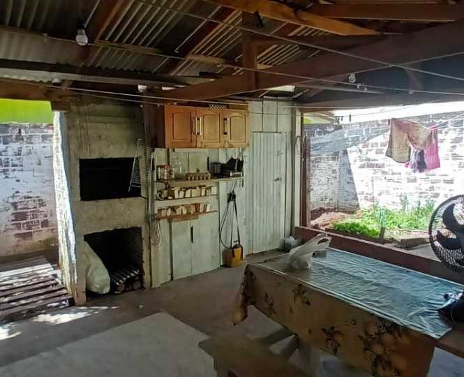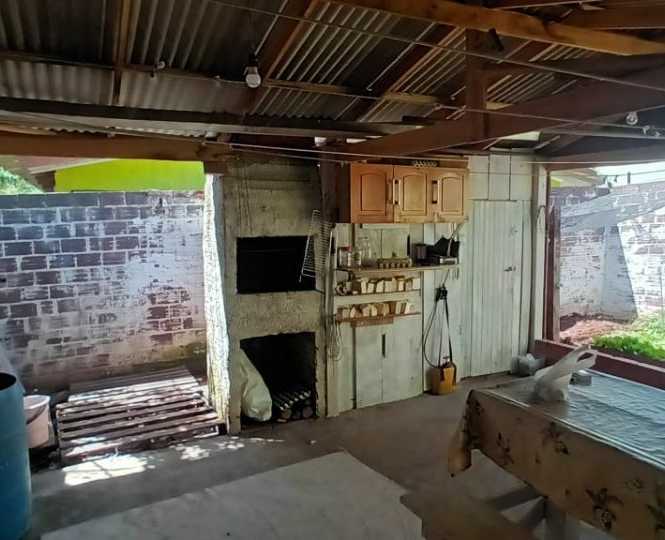 Casa mista com 116 m2, com 2 dormitórios, sala, cozinha com fogão campeiro, banheiro, garagem, lavanderia e depósito.