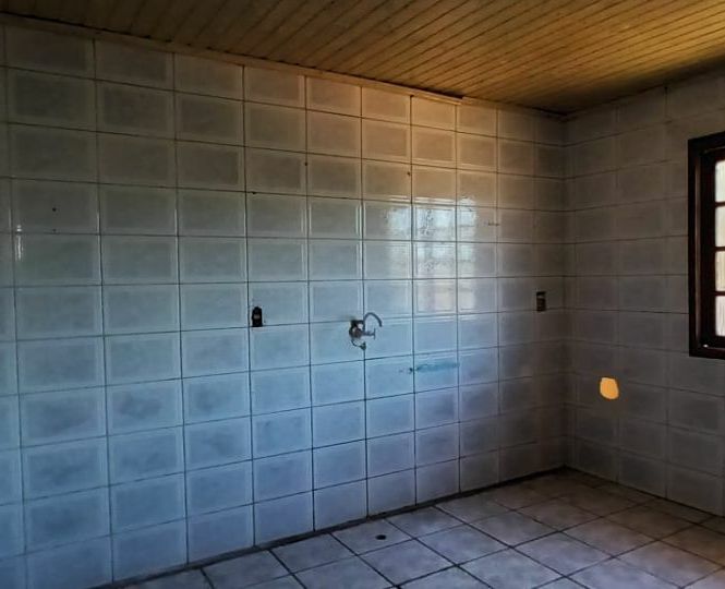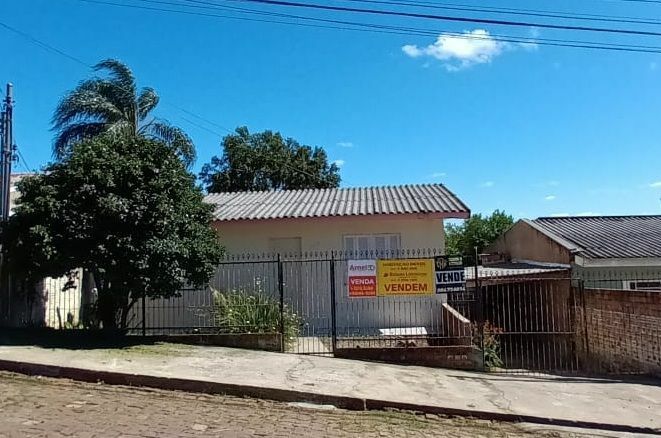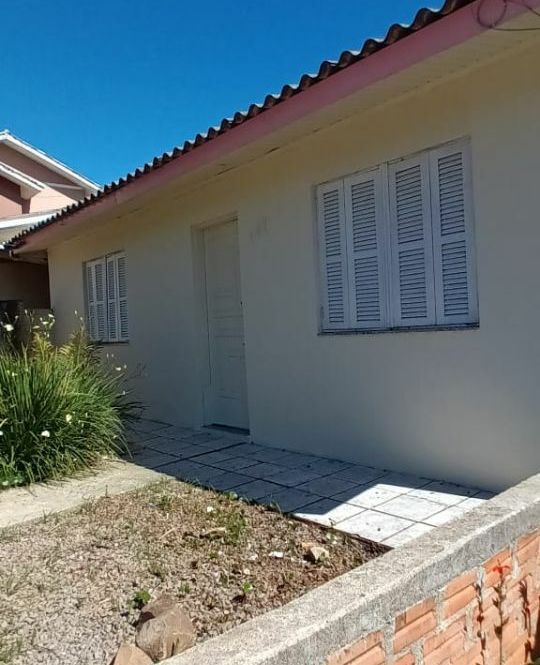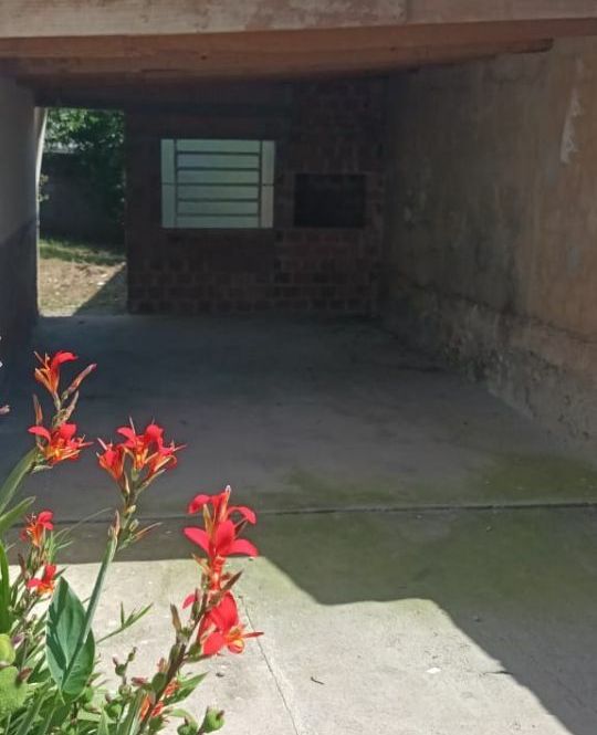 Casa de alvenaria com 2 dormitórios, sala, cozinha, banheiro, lavanderia e garagem com churrasqueira. Pátio grande.