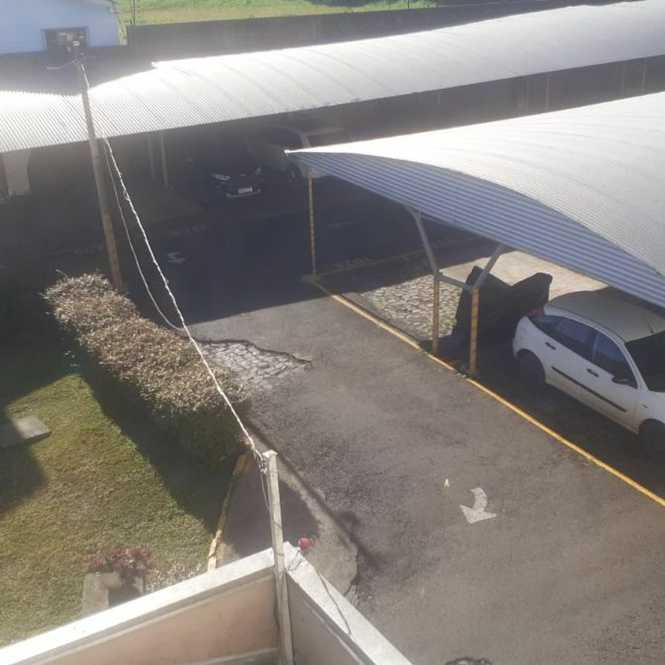 Apartamento com 2 dormitórios, sala, cozinha, área de serviço e garagem.