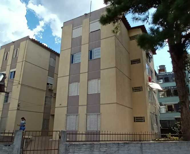Apartamento térreo, com 2 dormitórios, sala, cozinha, banheiro e área de serviço.
