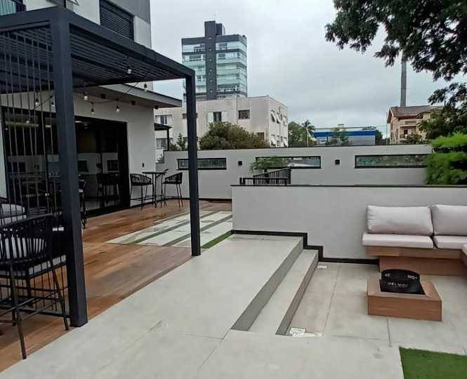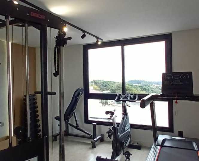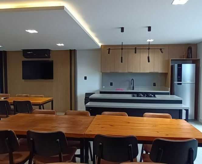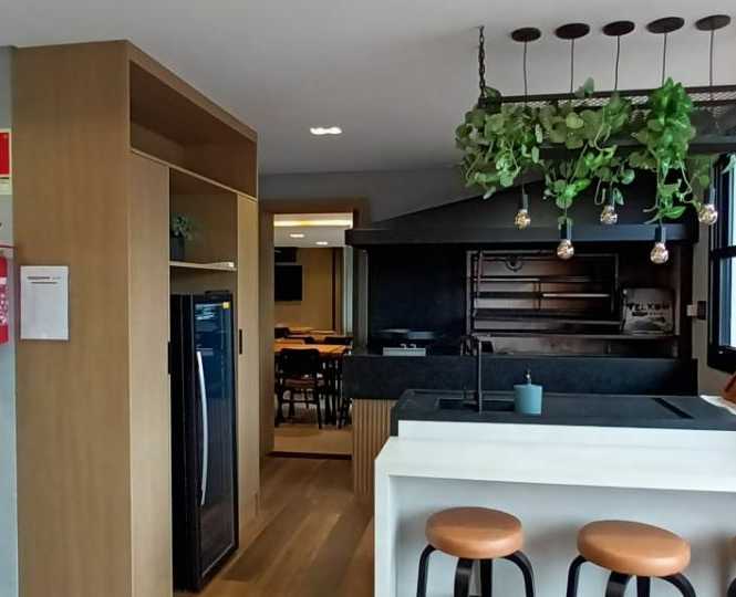 Apartamento com 2 dormitórios - 1 suíte, 2 banheiros, sala com sacada integrada e com churrasqueira, cozinha mobiliada e equipada com máquina de lavar roupas, forno microondas, forno elétrico, tanque, pia, aparelho junker para água quente.