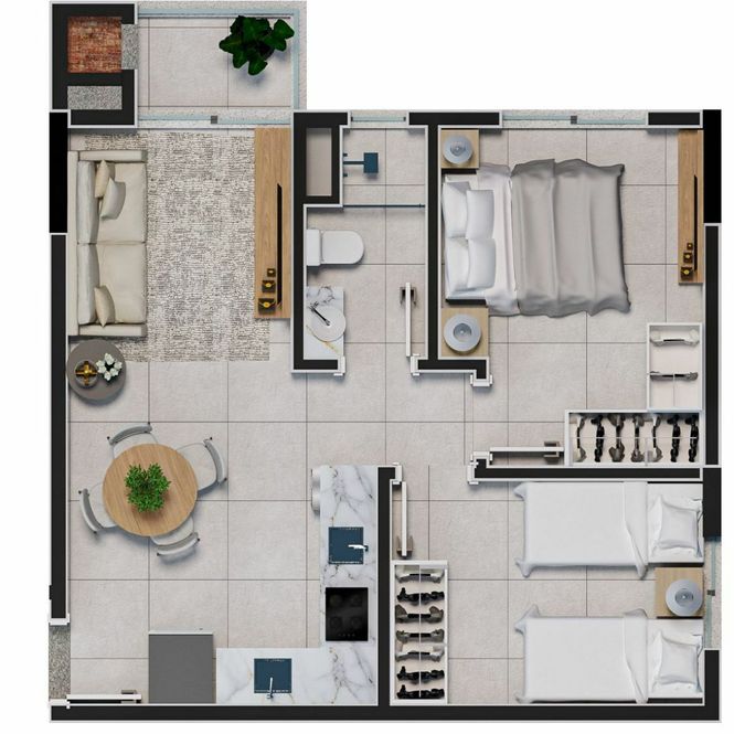 São apartamentos de 1 e 2 dormitórios, com opções de suíte, sacada com churrasqueira e unidades garden. Ideal para morar ou investir.
