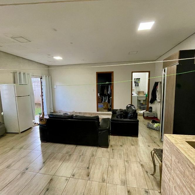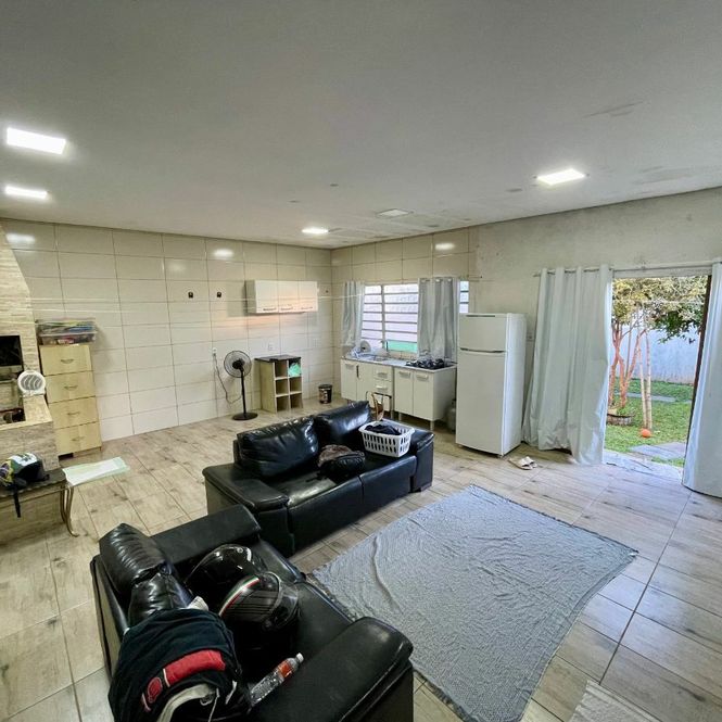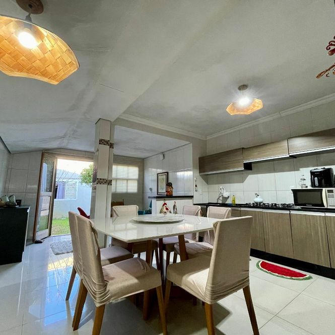 Casa de alvenaria com 3 dormitórios sendo 1 suíte , sala 2 ambientes, cozinha, estar íntimo, banheiro, lavanderia mais espaço gourmet nos fundos, com banheiro e mais 1 dormitório anexo.