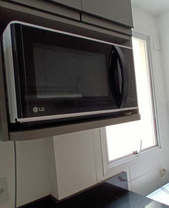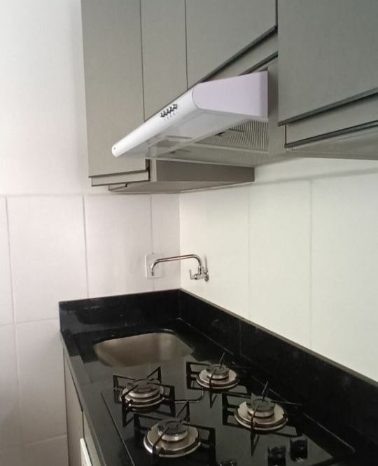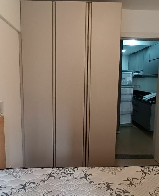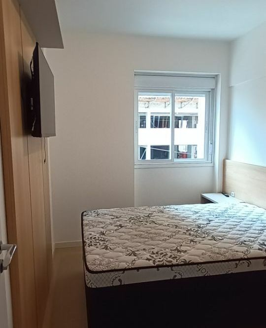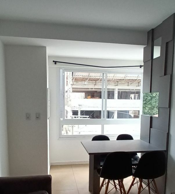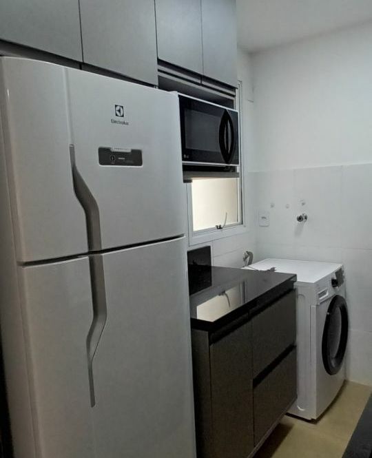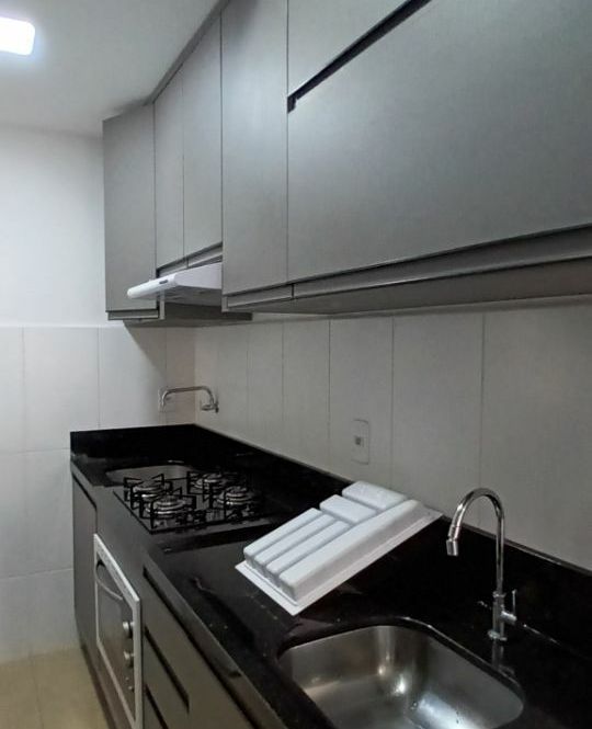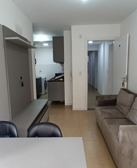 Apartamento com 1 dormitório, sala com sacada integrada, cozinha, banheiro e garagem.