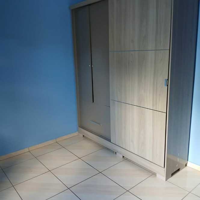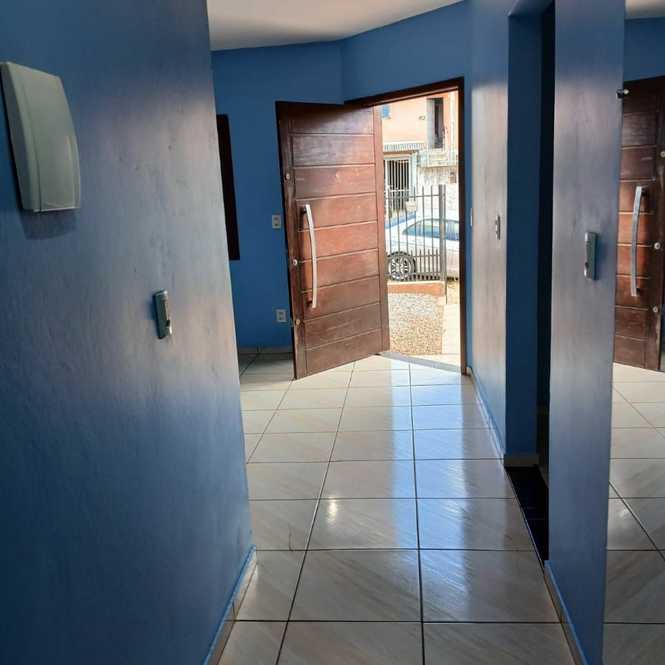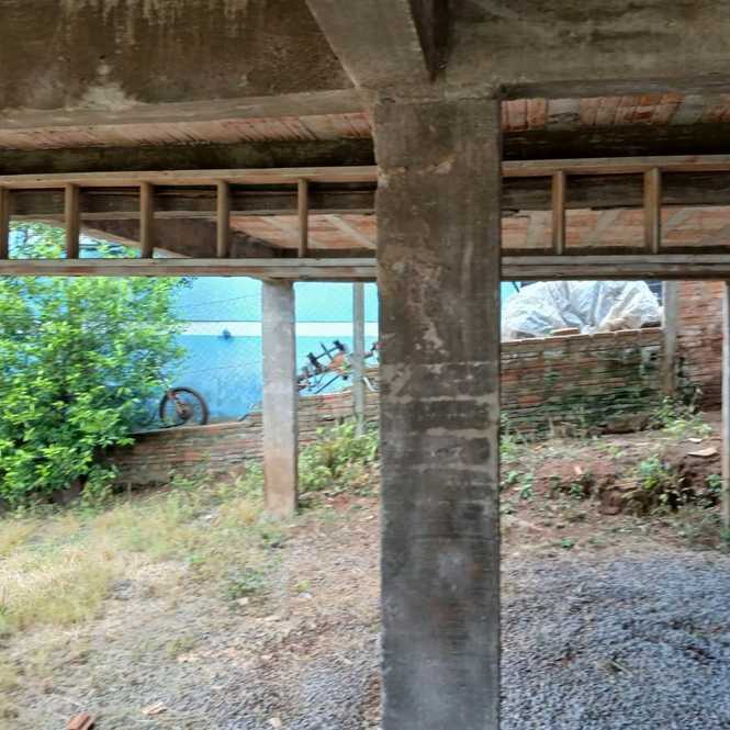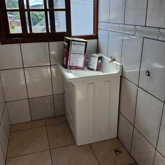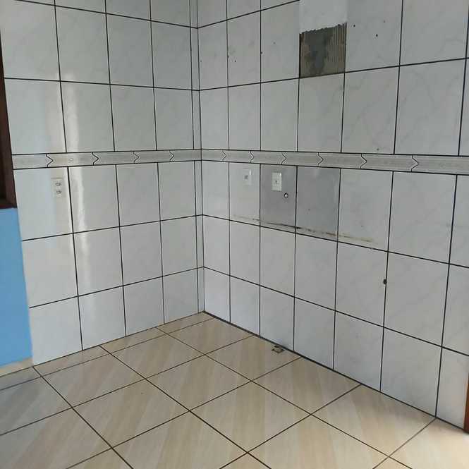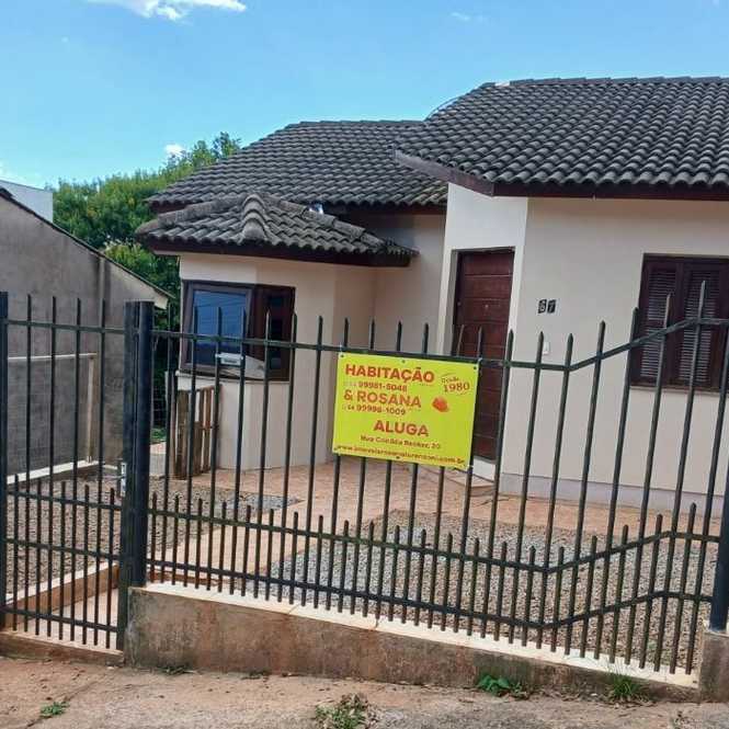 Casa de alvenaria com 1 dormitório, sala, cozinha, banheiro, lavanderia e porão para estacionamento de veículo.